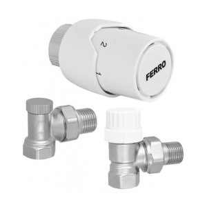 Set robineti radiator coltar tur retur cu cap termostatic ZTM21, Ferro