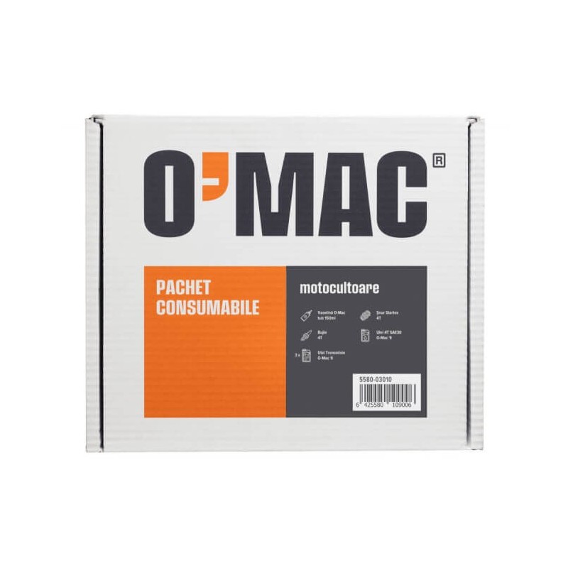 1 x VASELINĂ TUB O-MAC 150 ML 1 x ȘNUR STARTER 4T WINDSOR 1 x BUJIE 4T N9YC CHAMPION 1 x ULEI 4T SAE30 O-MAC - 1L 3 x ULEI TRANSMISIE O-MAC - 1L